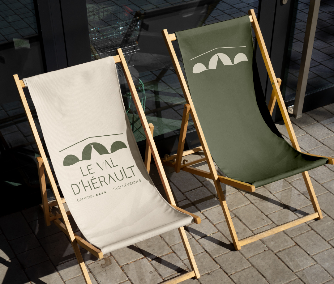 Création, d’une identité visuelle pour le camping le val d’hérault, un camping 4 étoiles dans le sud des Cévennes.